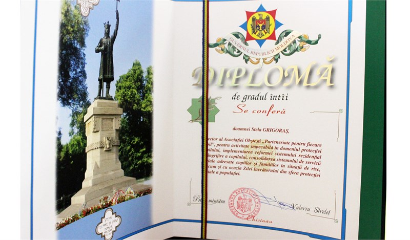 Stela Grigoras, directorul AO „Parteneriate pentru fiecare copil” a primit vineri, 18 septembrie curent, Diplomă...