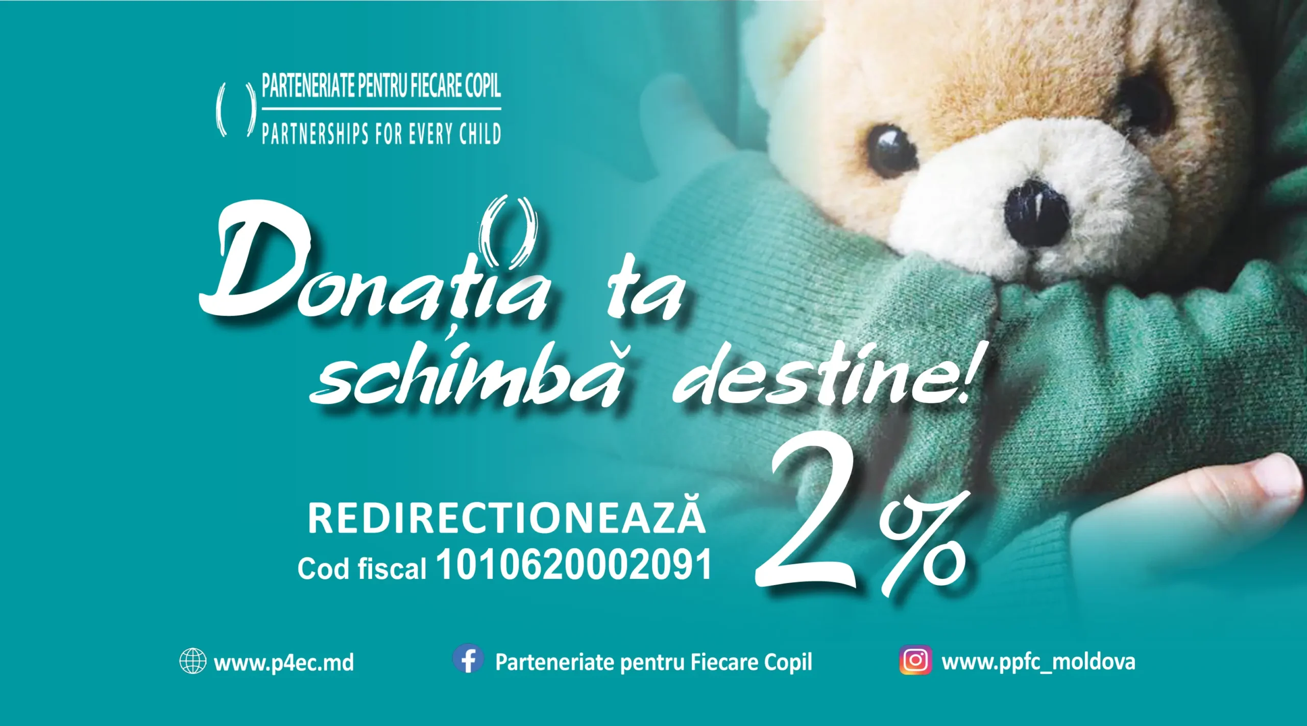 Până la data de 30 aprilie curent, poți să redirecționezi cele 2% din venit pentru AO PARTENERIATE PENTRU FIECARE COPIL...